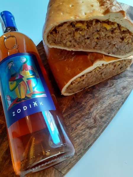 2. Winnica Zodiak Bliźnięta Orange 2019 do cudownego kulebiaka z kapustą, grochem i grzybami z sosem grzybowym