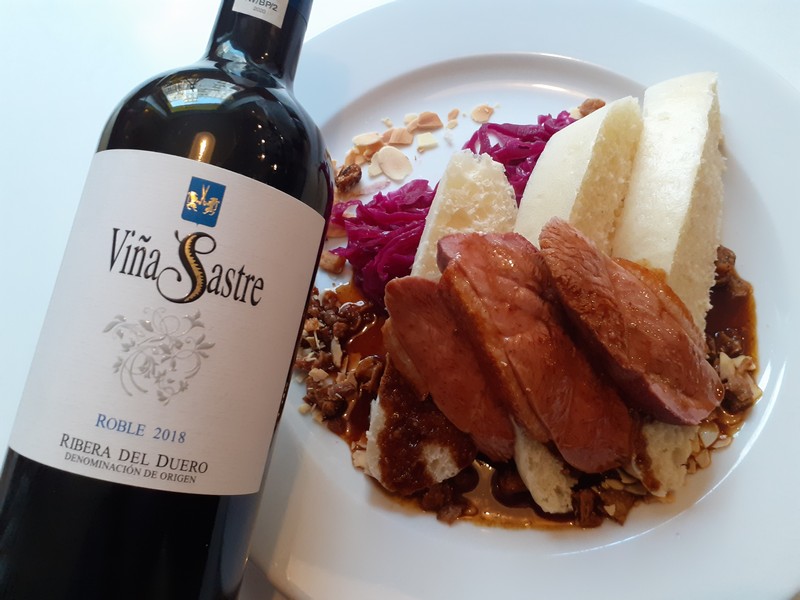 4. Vina Sastre Roble Ribera del Duero 2018 do arcymistrzowskiej piersi z kaczki, w korzennym sosie wiśniowym, modrą kapustą i prażonymi migdałami.