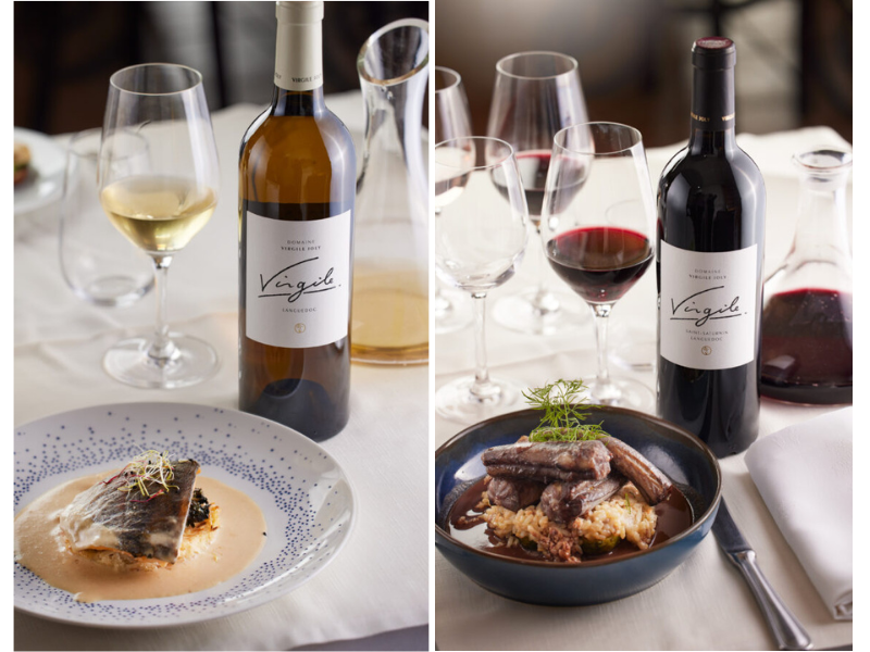 - Virgile Blanc - wytwarzane podobnie jak Saturne Blanc (również Grenache Blanc i Rolle), tylko ze starszych krzewów i beczkowane. To zupełnie zmienia optykę dla tego wina. Virgile Blanc to niezwykle oleiste i głębokie białe wino, ze słodkimi aromatami migdałów w karmelu, smażonych żółtych śliwek i dojrzałego sera. Usta mimo swojego ładunku, są bardzo soczyste i kwasowe, dając orzeźwienie i przygotowując do kolejnego łyku. Wino bardzo wysokiej klasy, można je porównać z białym Burgundem, białą Rioja czy białym Toskanem.